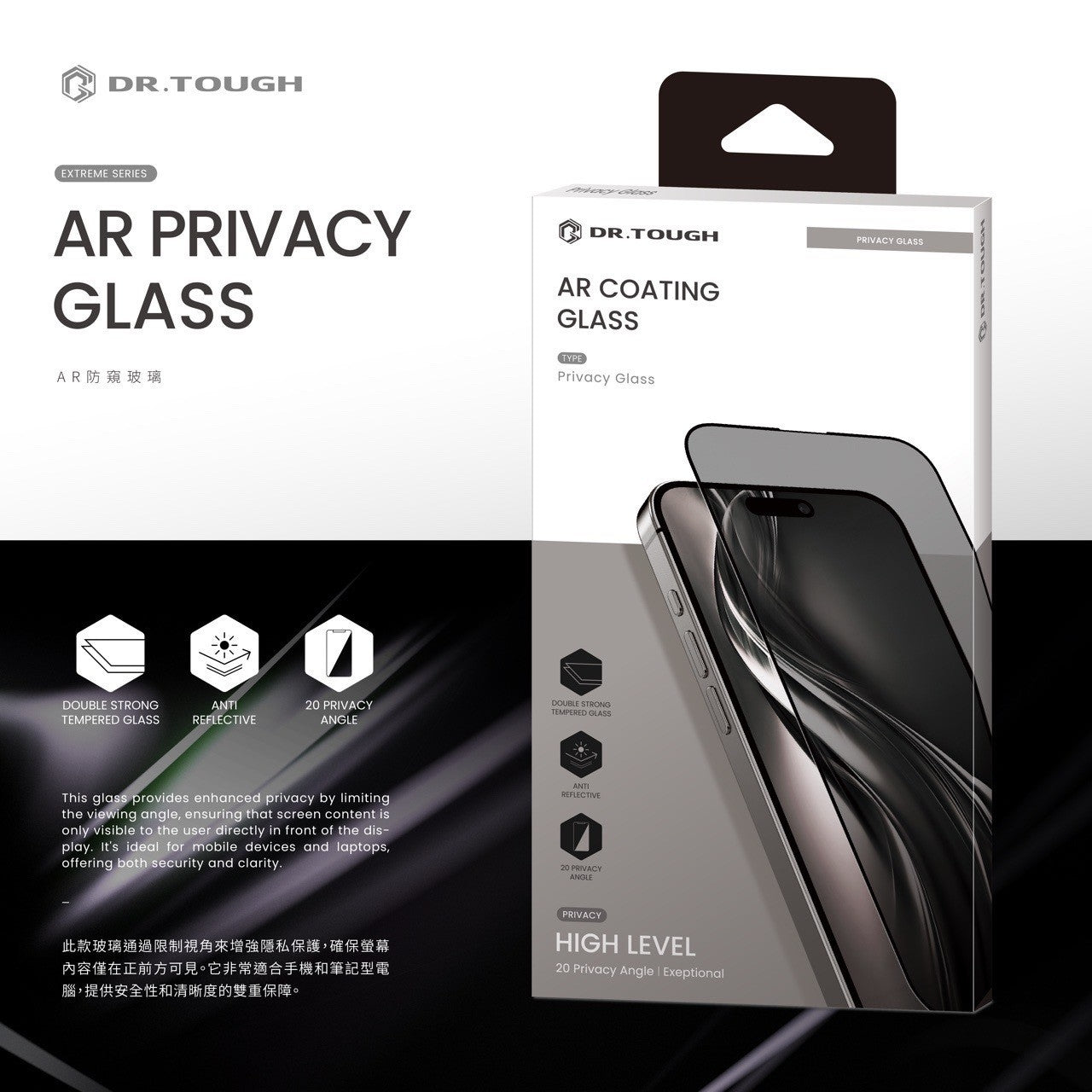 DR.TOUGH 硬博士 極致系列 滿版玻璃保護貼(AR防窺) iPhone 16 系列